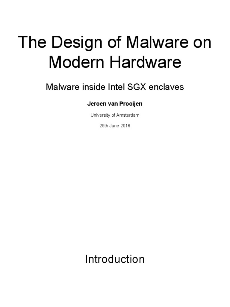 The Design of Malware On Modern Hardware Malware Inside Intel SGX